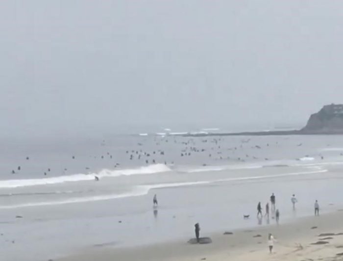 そんな中、この第一段階を心待ちにしていたのがサンディエゴ中のサーファーたちだ。予想はしていたがサンディエゴでも人気のパシフィックビーチは新型コロナウイルスでロックダウン中とは思えないほどの人で海が埋め尽くされた。