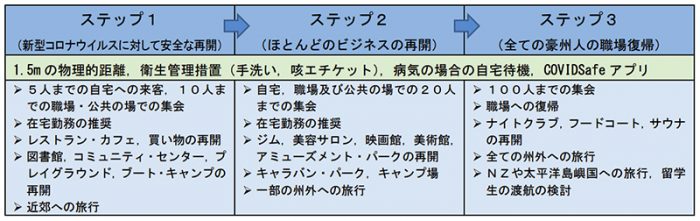 ▲図 Roadmap to a COVIDSafe Australia 出典:在オートラリア日本国大使館