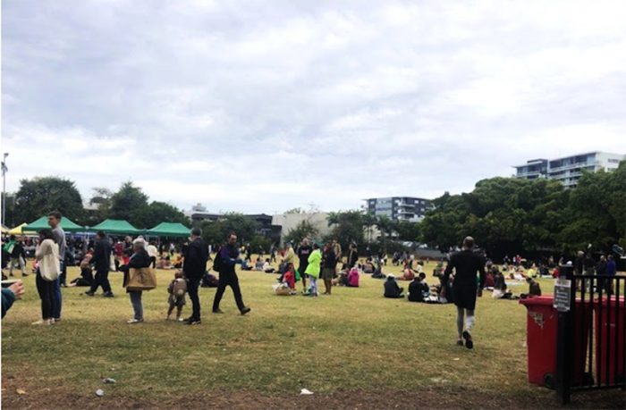 先週末、クイーンズランド州ブリスベン内の公園で再開されたファーマーズマーケットでは、多くの人で賑わった。