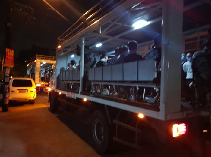 ▲写真 6月2日ケソン市での摘発で逮捕され移送される外国人(中国人が含まれているとみられる)。ほとんどが強制退去となるとみられる。 出典: National Capital Region Police Office