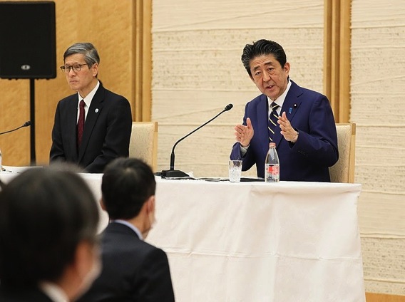 写真)尾見茂氏・安倍総理(2020年4月7日安倍内閣総理大臣記者会見)