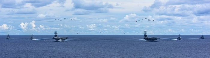 ▲写真 Nimitz, Reagan Demonstrate Unmatched Commitment to Free and Open Indo-Pacific 出典:Commander, U.S. 7th Fleet