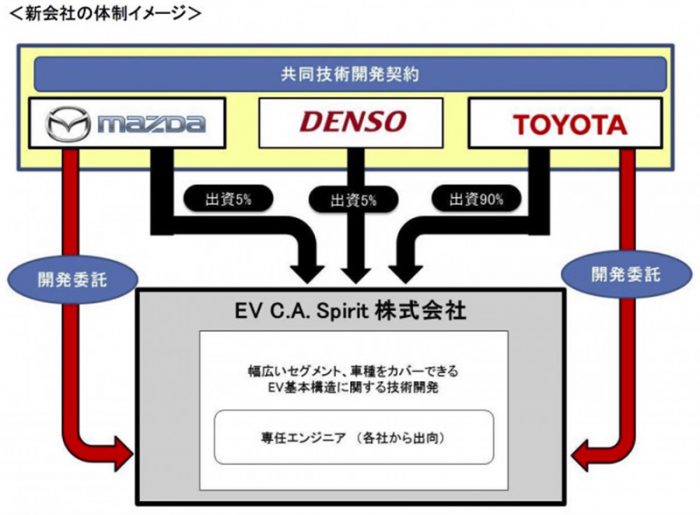 ▲図 EVCAの体制イメージ 出典:マツダ、トヨタ、デンソープレスリリース