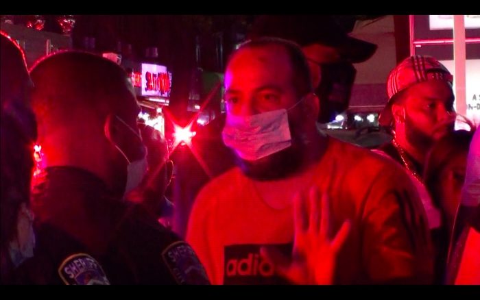 翌日、状況が改善されたか気になり、夜になってから現場に出向くと、通達にも関わらず、あたりはまた若者で埋め尽くされていた。前日と異なり、この晩は取締が行われていた。だが、取締を行っているのはニューヨーク市警(NYPD)ではなく、ニューヨーク市保安官事務所(NYSO、シェリフス・オフィス)であった。
