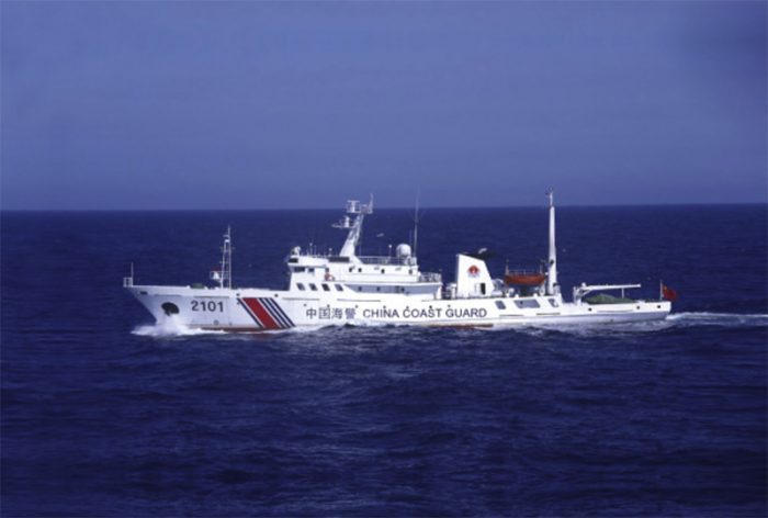 ▲写真 沖縄県・尖閣諸島周辺の領海に侵入した中国海警2101(2017年7月26日 出典:海上保安庁ホームページ