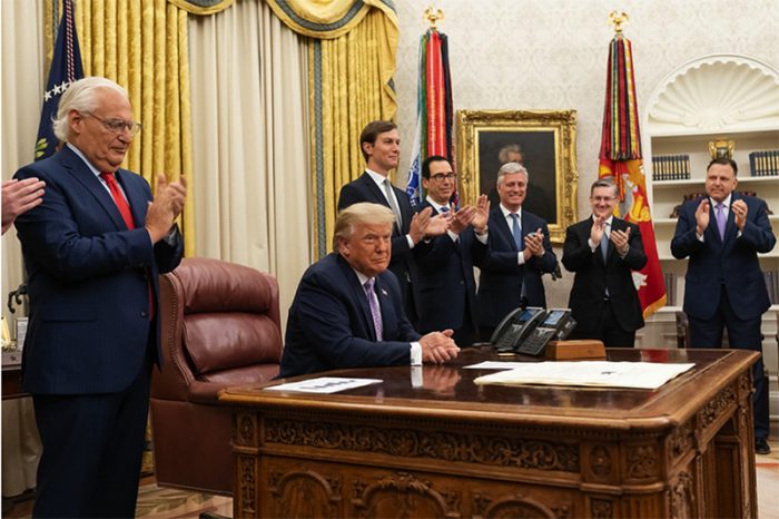 ▲写真 イスラエルとUAEの国交正常化を発表するトランプ米大統領(2020年8月13日 ホワイトハウス) 出典:flickr; The White House