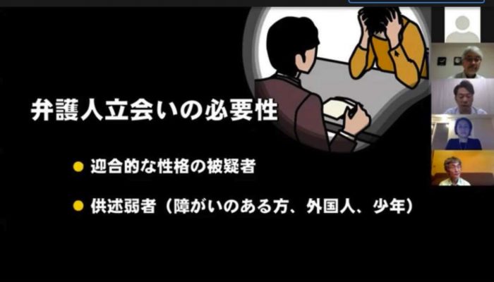 国際人権NGOヒューマン・ライツ・ウォッチと「取調べへの弁護人立ち会い」を求める法律家の会は8月20日、27日13時に予定されている第三回刷新会議会合を前に、緊急・オンライン勉強会を開催した。「取調べへの弁護人立ち会い」を軸に、弁護士や専門家が刑事手続きの現状や問題点、そして今後のあり方について提言を行った。