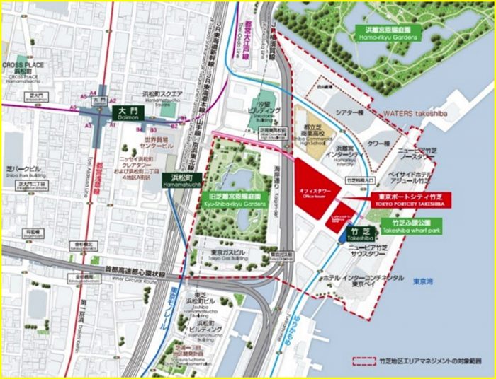 ▲図 「竹芝地区エリアマネジメント」対象範囲 出典:東急不動産