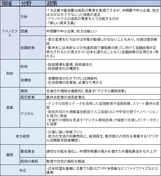 今回掲げている政策は安倍政権の修正ということのようだが、大きく言うと、以下のような政策があげられる。