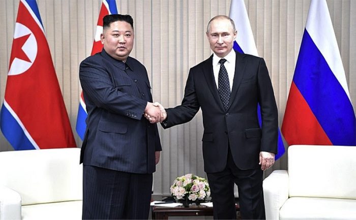 ▲写真 金委員長とプーチン大統領 出典:ロシア大統領府