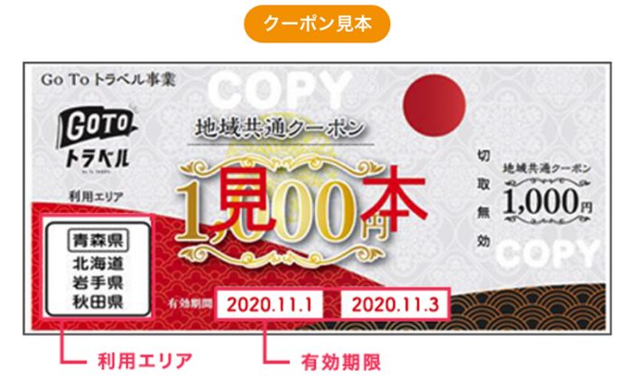 ・「Go Toトラベル」キャンペーンで「地域共通クーポン」が発行される。