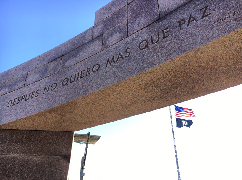 追悼記念碑の上部にはスペイン語と英語でドミニカの詩人による言葉が記されている。