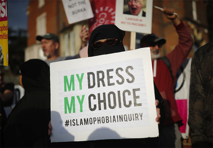▲写真 ブルカ着用の自由を訴える女性 出典:Christopher Furlong/Getty Images
