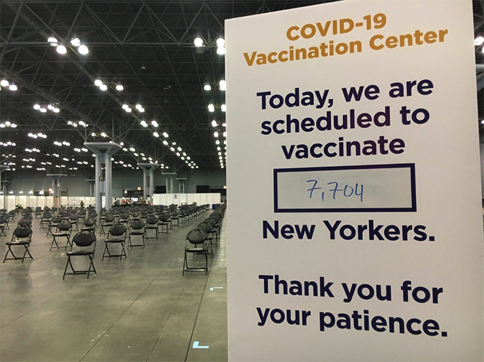 私はニューヨーク州が運営する「ジャービッツ・コンベンション・センター」という巨大な見本市の会場に設けられた接種会場で接種を受けることができた。幕張メッセとほぼ同じ規模の会場だ。