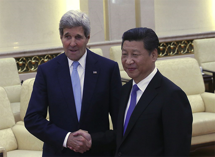 写真:訪中したケリー氏と習近平国家主席(2015年5月) 出典:Kim Kyung-Hoon – Pool/Getty Images