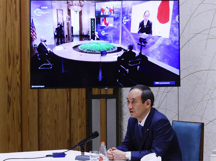 写真:バイデン大統領主催の気候変動サミットにオンラインで参加する菅首相(2021年4月22日 首相官邸) 出典:首相官邸facebook