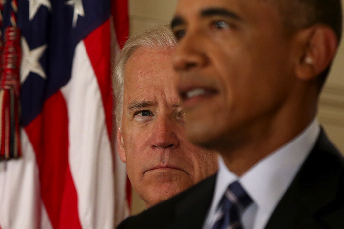 ▲写真 イラン核合意後に記者会見するオバマ大統領の横に控えるバイデン現大統領(当時、副大統領 2015年7月14日 ホワイトハウス) 出典:Andrew Harnik/WHITE HOUSE POOL (ISP POOL IMAGES)/Corbis/VCG via Getty Images