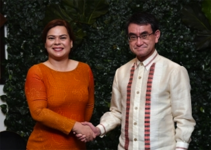 ▲写真 在ダバオ総領事館開館式典への出席等のため訪問中の河野太郎外務大臣とサラ・ドゥテルテ・ダバオ市長と会談を行った。(フィリピン・ダバオにおいて 2019年2月10日) 出典:外務省