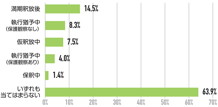 ▲資料 ダルク利用開始時における法的状態 出典:国立精神・神経医療研究センター精神保健研究所薬物依存研究部「ダルク追っかけ調査2018利用者ハンドブック」P.5 より