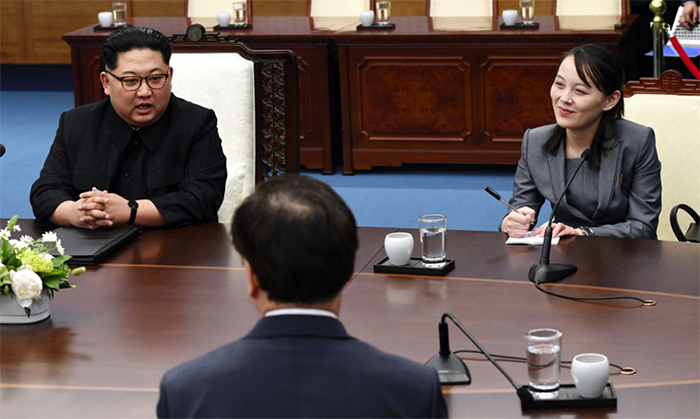 ▲写真 南北首脳会談に臨む金正恩と金与正(韓国板門店 2018年4月27日) 出典:Photo by pool/Getty Images