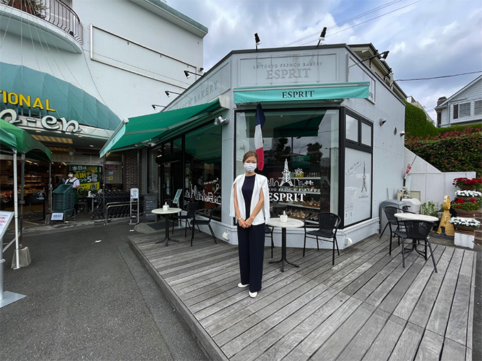 ▲写真 「ル トーキヨー フレンチベーカリー エスプリ (LE TOKYO FRENCH BAKERY ESPRIT) 」の前にて藤森もも子氏 ⓒJapan In-depth編集部