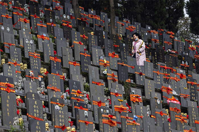 ▲写真 76日間にわたった長期封鎖から1年。墓を清掃する人の姿も(2021年4月3日 中国・武漢市) 出典:Getty Images