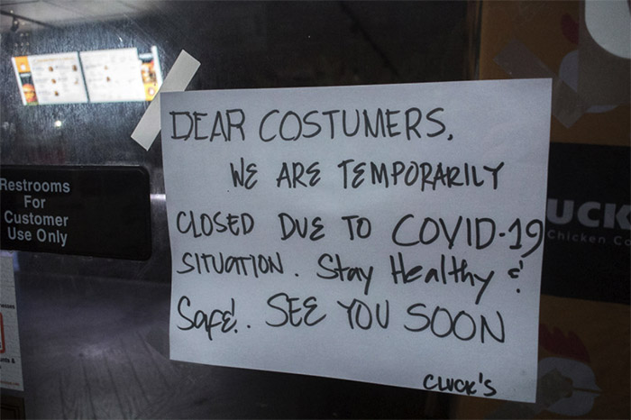 ▲写真 新型コロナウイルス拡大で一時閉店を告げる日本料理店(2020年3月28日 米・ニューヨーク) 出典:Bill Tompkins/Getty Images