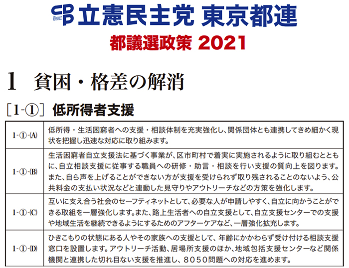 都議選公約分析「立憲民主党」まっとうな都政のためにゼロコロナ政策で大丈夫?