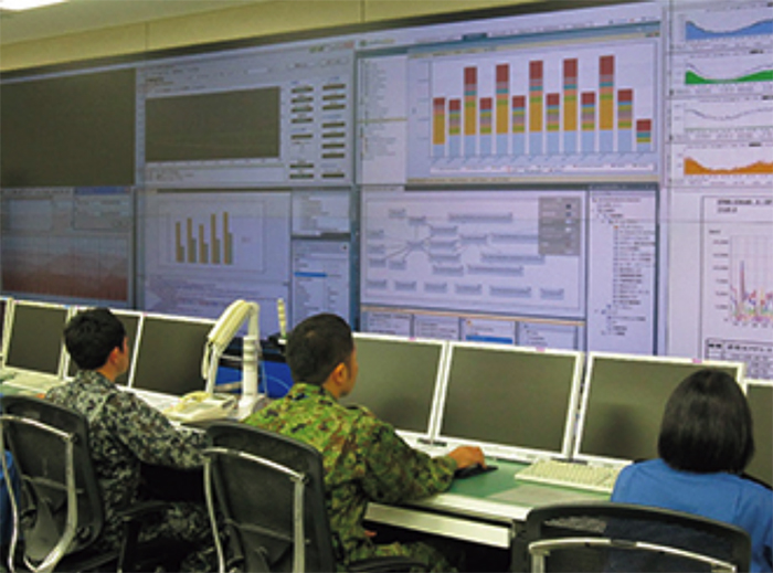▲写真 高度化・巧妙化するサイバー攻撃に対応するサイバー防衛隊員(令和2年度防衛白書) 出典:防衛省