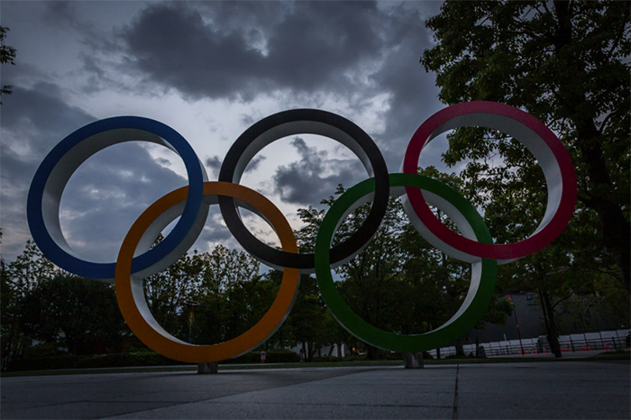 ▲写真 国立競技場の前のオリンピックリング(2021年6月23日) 出典:Photo by Yuichi Yamazaki/Getty Images