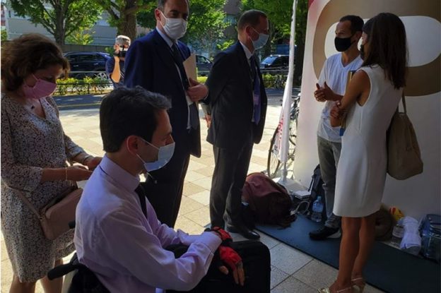 ▲写真 左からフィリップ・セトン駐日フランス大使、アリス・ルフォ副外交顧問、エマニュエル・ボンヌ外交顧問、フィショ氏 提供:フィショ氏の支援者