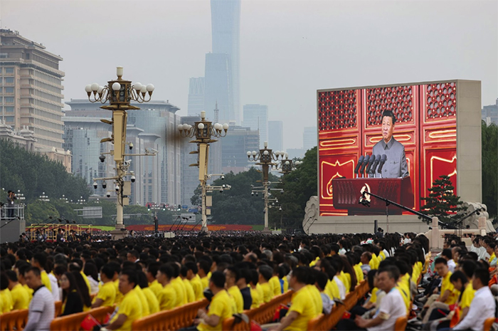 トップ写真:中国・北京。大画面に映し出される習近平国家主席の映像(6月30日) 出典:Photo by Andrea Verdelli/Getty Image