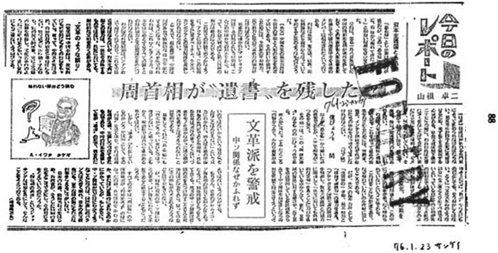 第3と第4に関してはたくさんの日本人が覚えているだろう。1976年に「周首相が“遺書”を残した」と題する記事が産経新聞に掲載されたのだ。