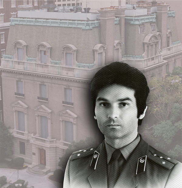 ▲写真 Background/ワシントンD.C.ソ連大使館外景(KGBワシントン支局は大使館の中にあった)、Foreground/ユリ・シ ヴェッツ オフィシャルKGB写真(1987年) 出典:background/米・国防総省(1983年11月15日),Foreground:Courtesy Yuri Shvets,Composite:Scott Filipski