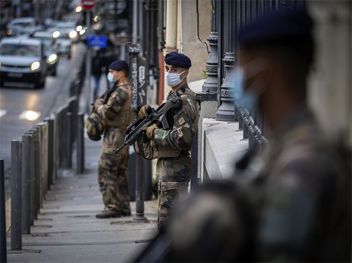 ▲写真 マルセイユのテロを警戒するフランス兵(2020年11月03日) 出典:Photo by Arnold Jerocki/Getty Images