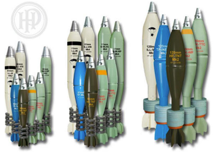▲写真 HDS社の迫撃砲弾 左から60ミリ、81ミリ、120ミリ 出典:HDS