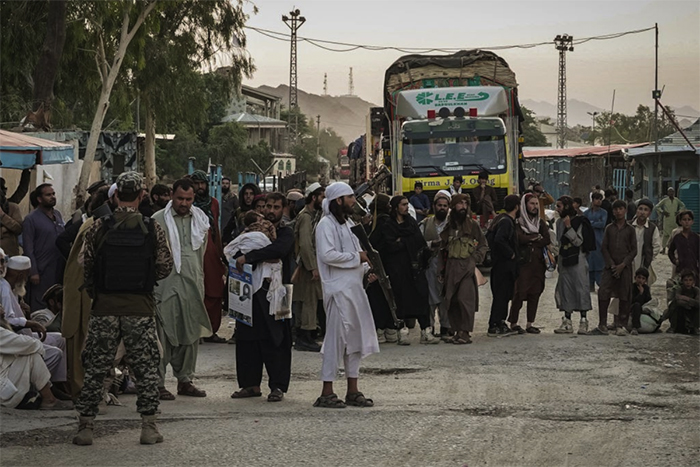 ▲写真 パキスタン、トーカム交差点から見たタリバン戦闘員の様子(2021年8月20日) 出典:Photo by Danial Shah/Getty Images