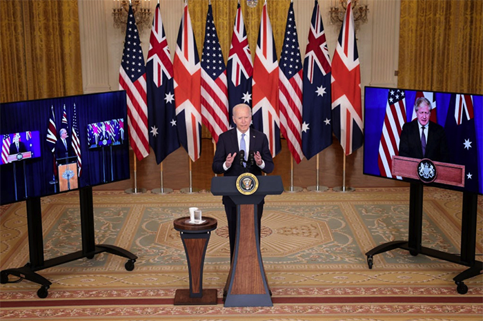 このように南シナ海海域で緊張状態が続く中、「自由で開かれたインド太平洋」を掲げて米主導で創設された日米豪印による戦略対話の枠組み「クアッド」に続いて、9月15日には米英豪による新たな安全保障の枠組み「AUKUS(オーカス)」が創設された。