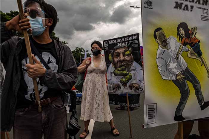 ▲写真 反ドゥテルテ大統領デモに参加する市民 フィリピン・マニラ(2021年7月26日) 出典:Photo by Ezra Acayan/Getty Images