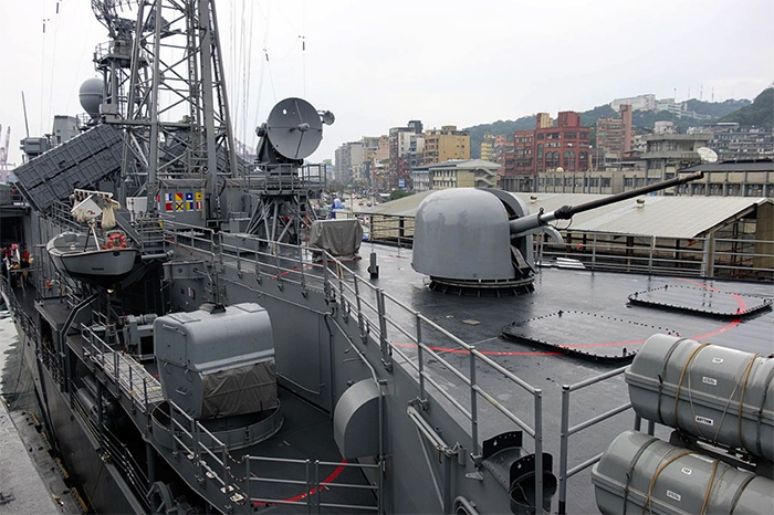 ▲写真 成功級の主砲は艦橋と煙突に挟まれた場所にある。対空砲や警備用として搭載しており砲戦や艦砲射撃での役割は期待されていない。写真は張騫艦での搭載状況。(9 March 2017) 出典:Photo by 玄史生 Public Domain