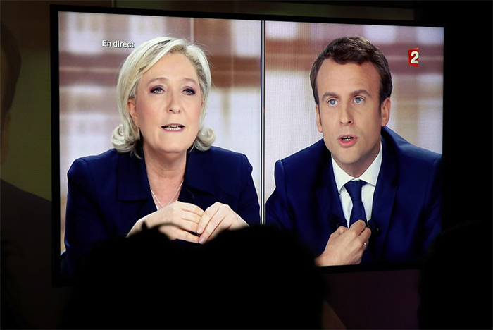 ▲写真 マクロン対ルペンのテレビ討論会を見る支持者たち(2017年5月03日) 出典:Chesnot/Getty Images