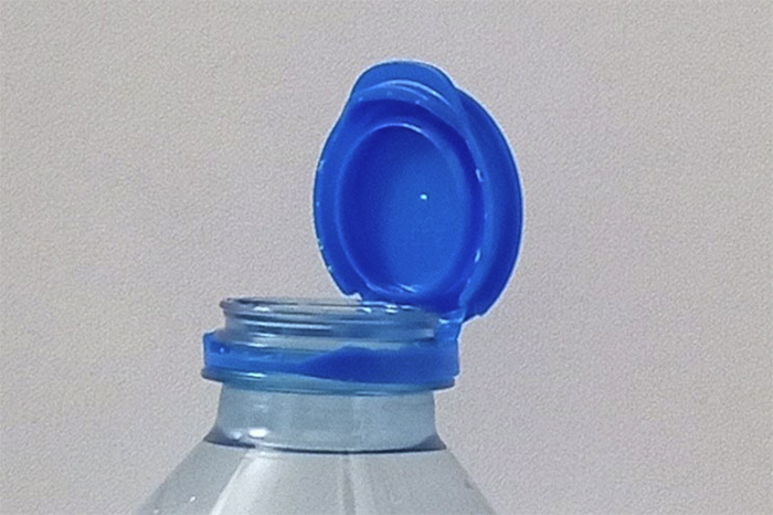▲写真 ペットボトルに取り付けられたキャップ ※写真は違うメーカーの薄型の蓋(撮影筆者)