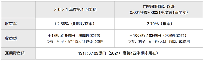 ▲図 2021年度第1四半期末の年金積立金運用状況の概要 出典:年金積立金管理運用独立行政法人