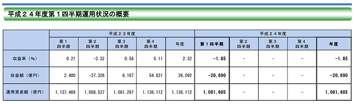 ▲図 2012年度第1四半期年金積立金運用状況の概要 出典:年金積立金管理運用独立行政法人