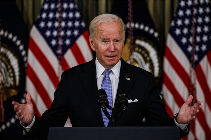 ▲写真 ホワイトハウスで記者会見をするバイデン大統領(2021年11月6日) 出典:Photo by Samuel Corum/Getty Images