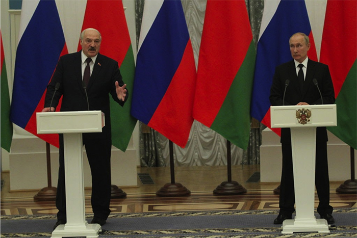 ▲写真 共同記者会見に臨むルカシェンコ・ベラルーシ大統領とプーチン露大統領(2021年9月9日) 出典:Photo by Mikhail Svetlov/Getty Images