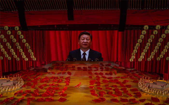 ▲画像 中国共産党創立100周年を祝う式典での習近平大統領を示す大画面(2021年6月28日) 出典:Photo by Kevin Frayer/Getty Images