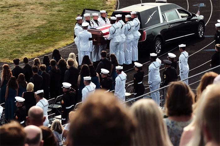 ▲写真 カブールでの自爆テロで死亡した13人の米軍兵士の1人の葬儀の様子 (オハイオ州ミランにて、2021年9月13日) 出典:Photo by Matthew Hatcher/Getty Images