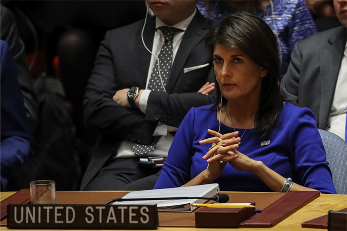 ▲写真 トランプ政権で国連大使を務めたニッキー・ヘイリー氏(2018年4月14日、国連本部) 出典:Drew Angerer/Getty Images