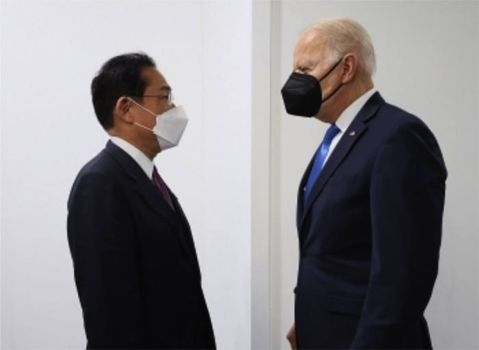 ▲写真 立ち話する岸田首相とバイデン米大統領(2021年11月2日 英・グラスゴー) 出典:内閣広報室/外務省ホームページ